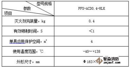 發(fā)動機艙用超細(xì)干粉自動滅火裝置主要技術(shù)參數(shù)